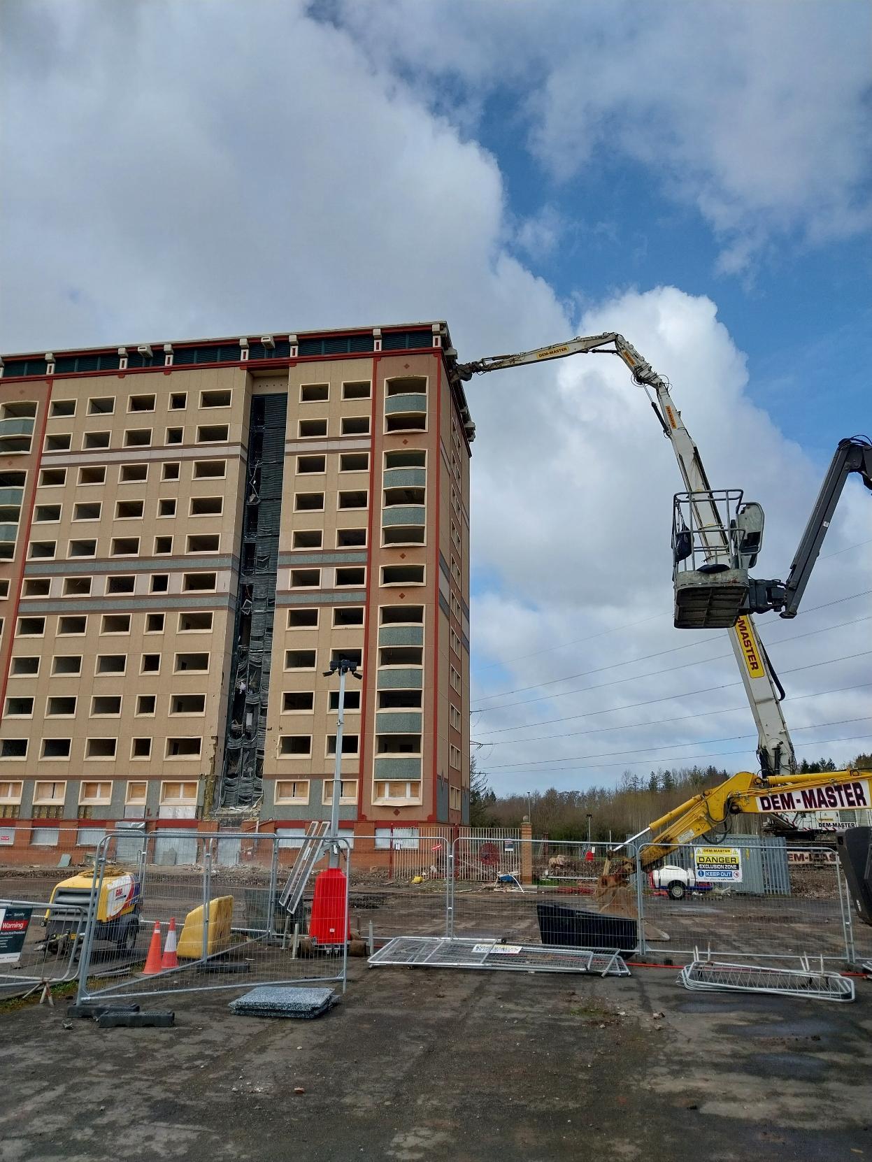 Demolition work is continuing at Allershaw Tower in Wishaw, as transformation across the Gowkthrapple area gathers pace.