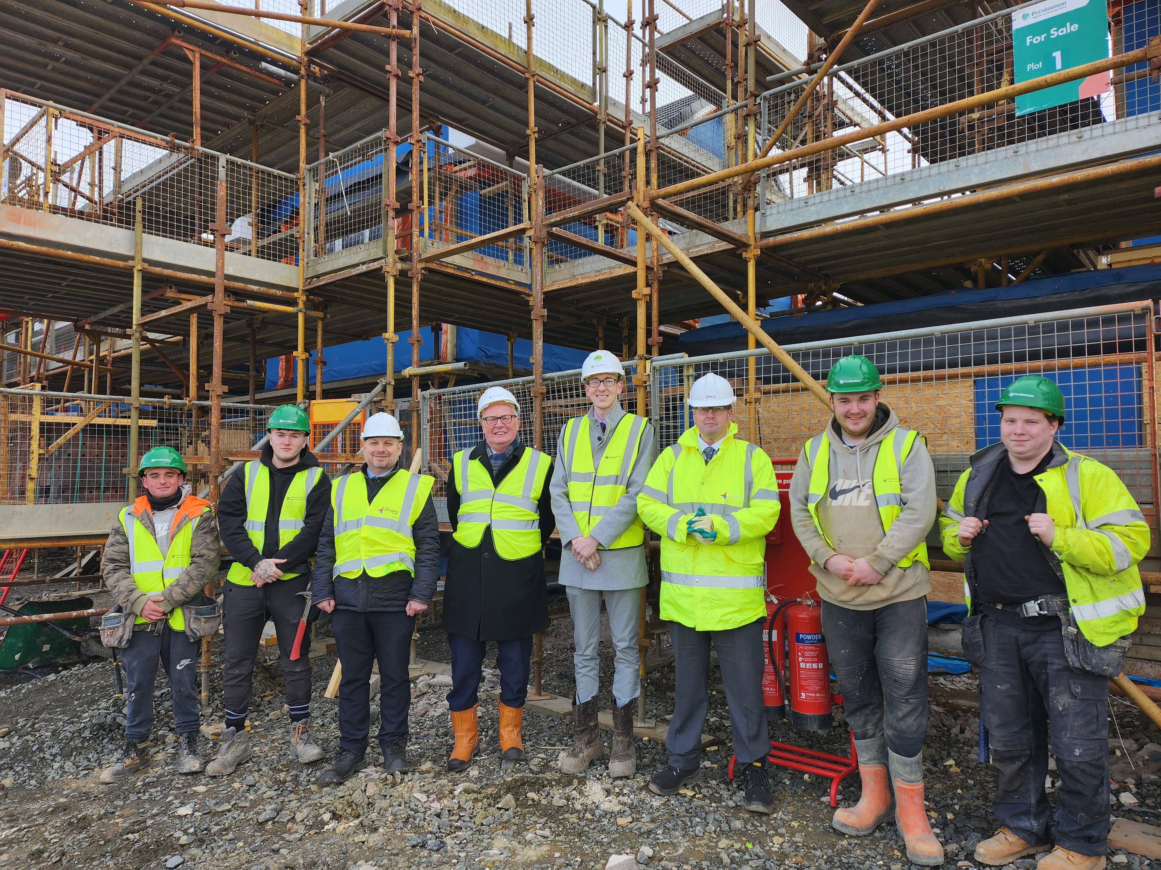 Council Leader Jim Logue was joined by Chief Executive Des Murray and Housing Manager Tony Mallaghan on the site visit, where they met with four of the company’s bricklaying and joinery apprentices and heard how they are developing their skills and gaining valuable experience in the construction sector.