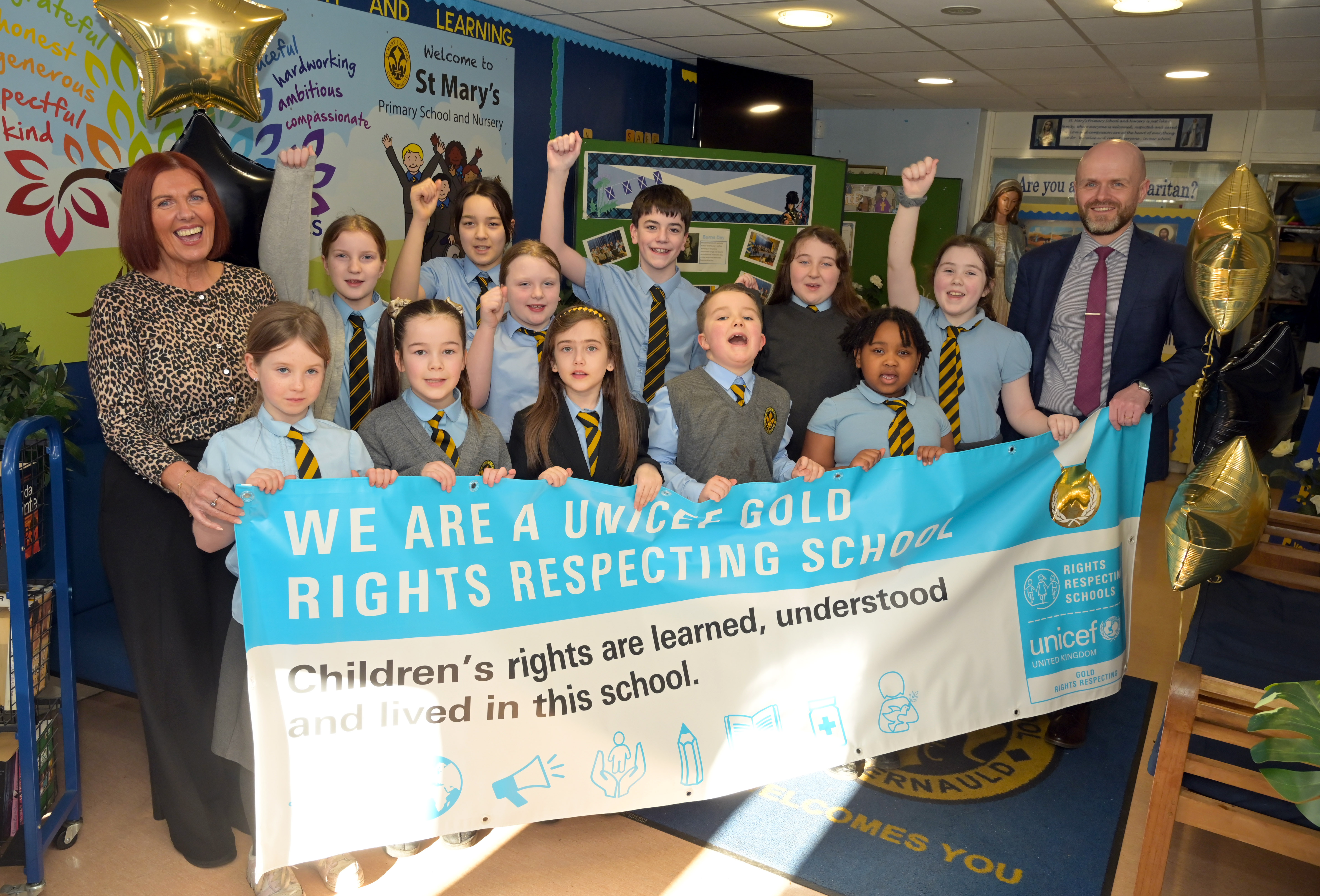 Pupils and staff at St Mary's Primary School have secured the prestigious Gold Rights Respecting Schools Award.
