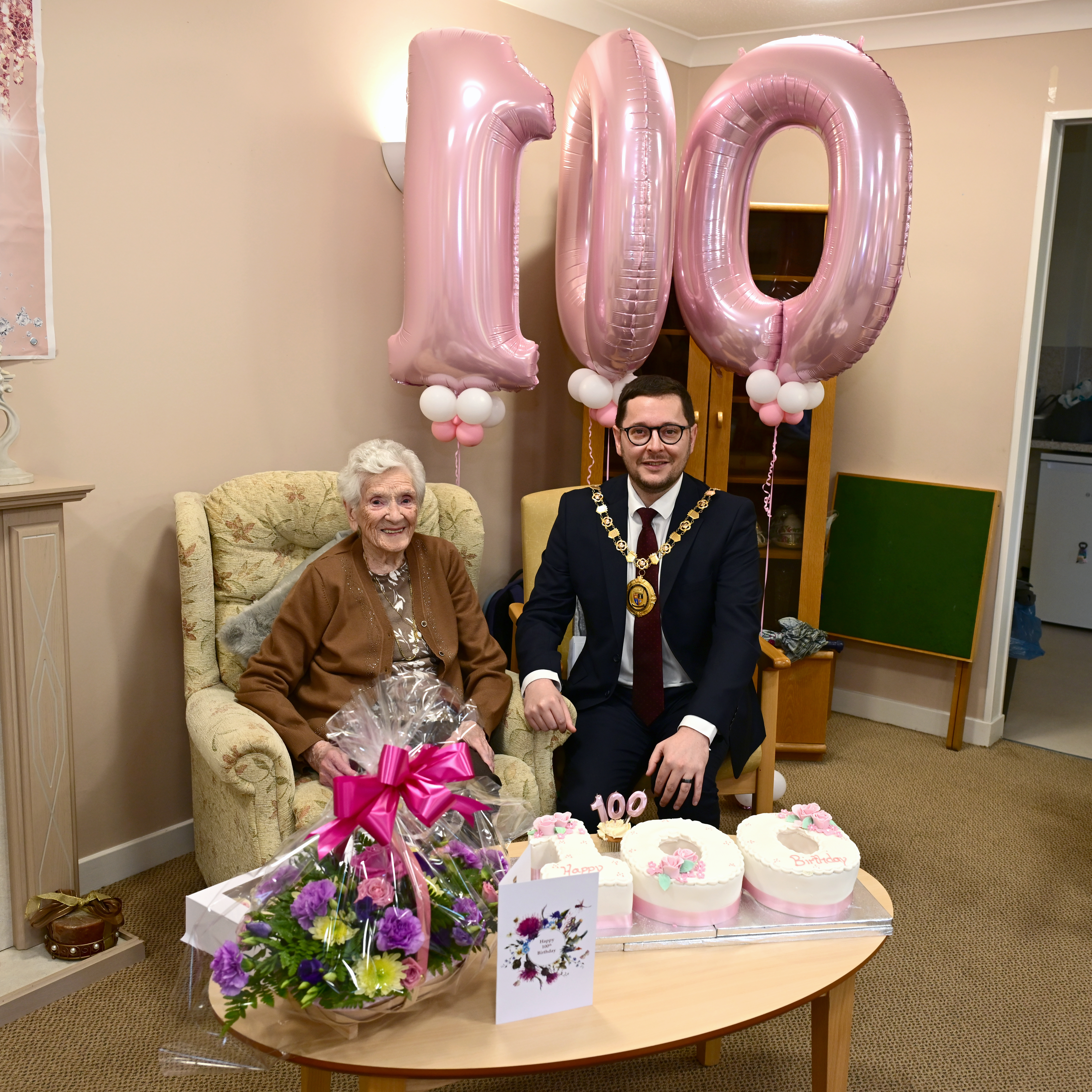 A special 100th birthday celebration in Wishaw has been made even more memorable thanks to a visit from North Lanarkshire’s Provost and Dr Morrison Young, Depute Lord Lieutenant.